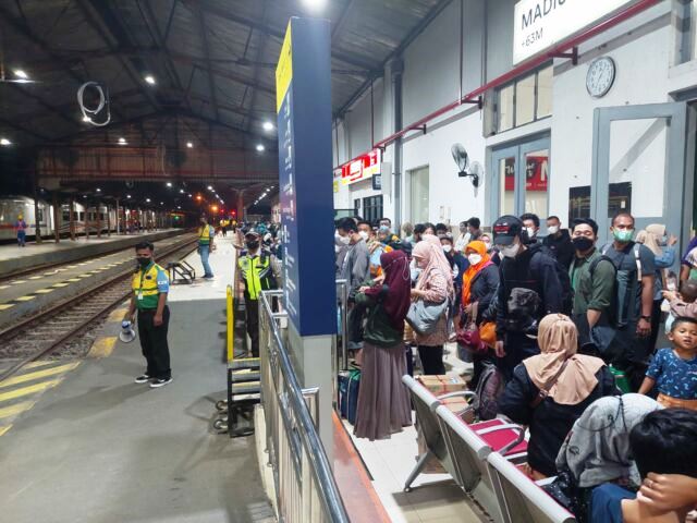 Ilustrasi penumpang kereta di Stasiun Madiun.