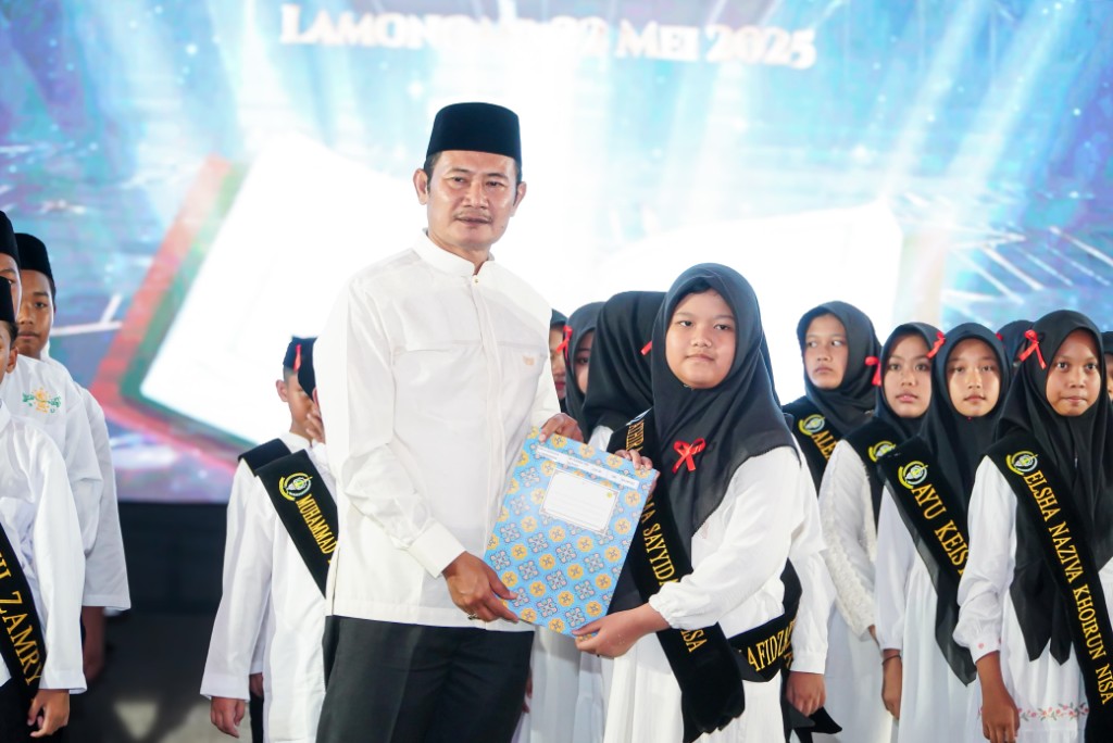 Sebanyak 3.591 anak Lamongan dikukuhkan menjadi hafidz dan hafidzah oleh Bupati Lamongan Yuhronur Efendi pada wisuda tahfidz ke tujuh, Kamis (22/5/2025) di Alun-Alun Kabupaten Lamongan.