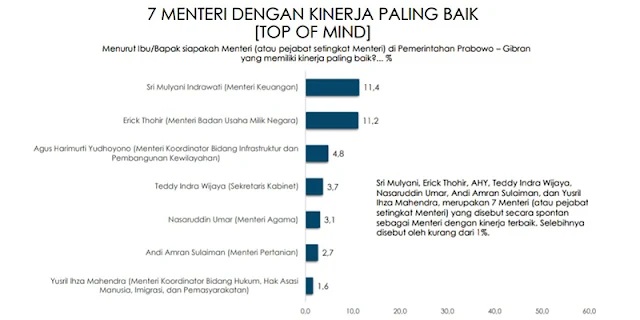 AHY berada di bawah Menteri Keuangan Sri Mulyani dan Menteri BUMN Erick Thohir di 3 besar Menteri berkinerja positif dalam 100 hari pemerintahan Presiden Prabowo Subianto. Di bawahnya, ada Menteri Agama Nasaruddin, Sekretaris Kabinet Mayor Teddy, dan Menteri Pertanian Andi Amran Sulaiman.