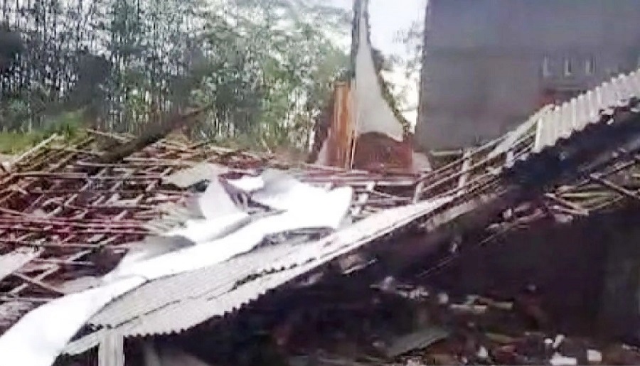 Atap rumah warga di Bondowoso ambruk diterjang angin puting beliung, Jumat (8/11/2024).