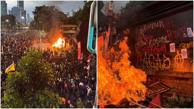 Pantauan di lokasi, Jumat (29/8/2025), terlihat mobil Honda Jazz yang dibakar berada di Jalan Kramat Kwitang seberang Mako Brimob. Api masih menyala dan asap hitam tebal membumbung tinggi setelah dibakar massa aksi yang didominasi ojek online (ojol) hingga masyarakat.