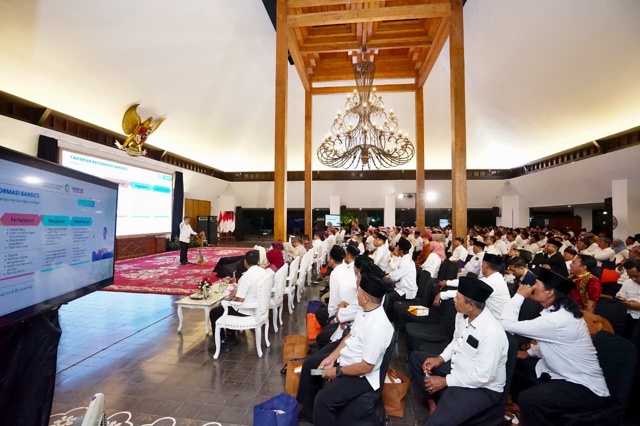 BANYUWANGI (wartadigital.id) – Di sela kunjungan kerjanya ke Banyuwangi, 2-3 Oktober 2025, Menteri Sosial (Mensos) Saifullah Yusuf bertemu dengan para camat, lurah, dan kepala desa di Pendopo Sabha Swagatha Blambangan, Kamis malam (2/10/2025). Dalam kesempatan itu, Mensos mengajak mereka untuk berpartisipasi menyukseskan program digitalisasi bansos yang saat ini sedang diujicobakan di Banyuwangi.