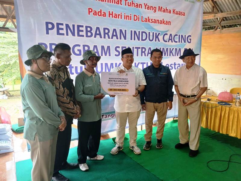 Regional Chief Executive Officer (RCEO) BSI Regional 8 Surabaya Jajang Abdul Karim menjelaskan hari ini pihaknya meresmikan desa binaan budidaya cacing untuk pupuk di Dusun Tukum. Dan ini adalah inovasi luar biasa di sektor pertanian. “Apa yang dilakukan desa binaan ini sejalan dengan komitmen Presiden Prabowo Subianto yang menginginkan swasembada pangan sebagai langkah utama guna menghadapi tantangan global yang makin kompleks. Indonesia diminta mampu memproduksi dan memenuhi kebutuhan pangan nasional secara mandiri. Desa binaan budidaya cacing ikut mendukung swasembada pangan dalam penyediaan pupuk organik untuk pertanian ,” katanya.