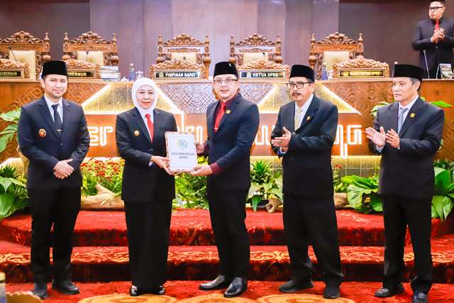 Persetujuan tersebut disampaikan melaui rekomendasi yang diberikan langsung kepada Gubernur Jawa Timur Khofifah Indar Parawansa didampingi Wakil Gubernur Emil Elestianto Dardak oleh Wakil Ketua DPRD Jatim Deni Wicaksono.