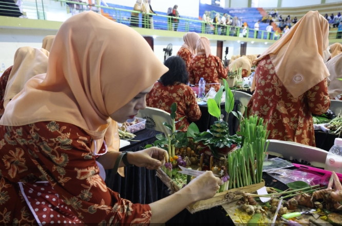 Pemandangan itu terlihat dalam Lomba Kreativitas Merangkai Rempah-rempah yang diselenggarakan Dharma Wanita Persatuan (DWP) UP Dinas Pendidikan dan Kebudayaan di GOR Sasana Krida Anoraga, Raci, Rabu (19/11/2025).