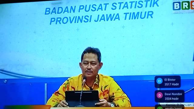 Kepala BPS Provinsi Jawa Timur Dr Ir Zulkipli MSi memberikan keterangan ke media di Kantor BPS Provinsi Jatim, Kamis (2/1/2025).