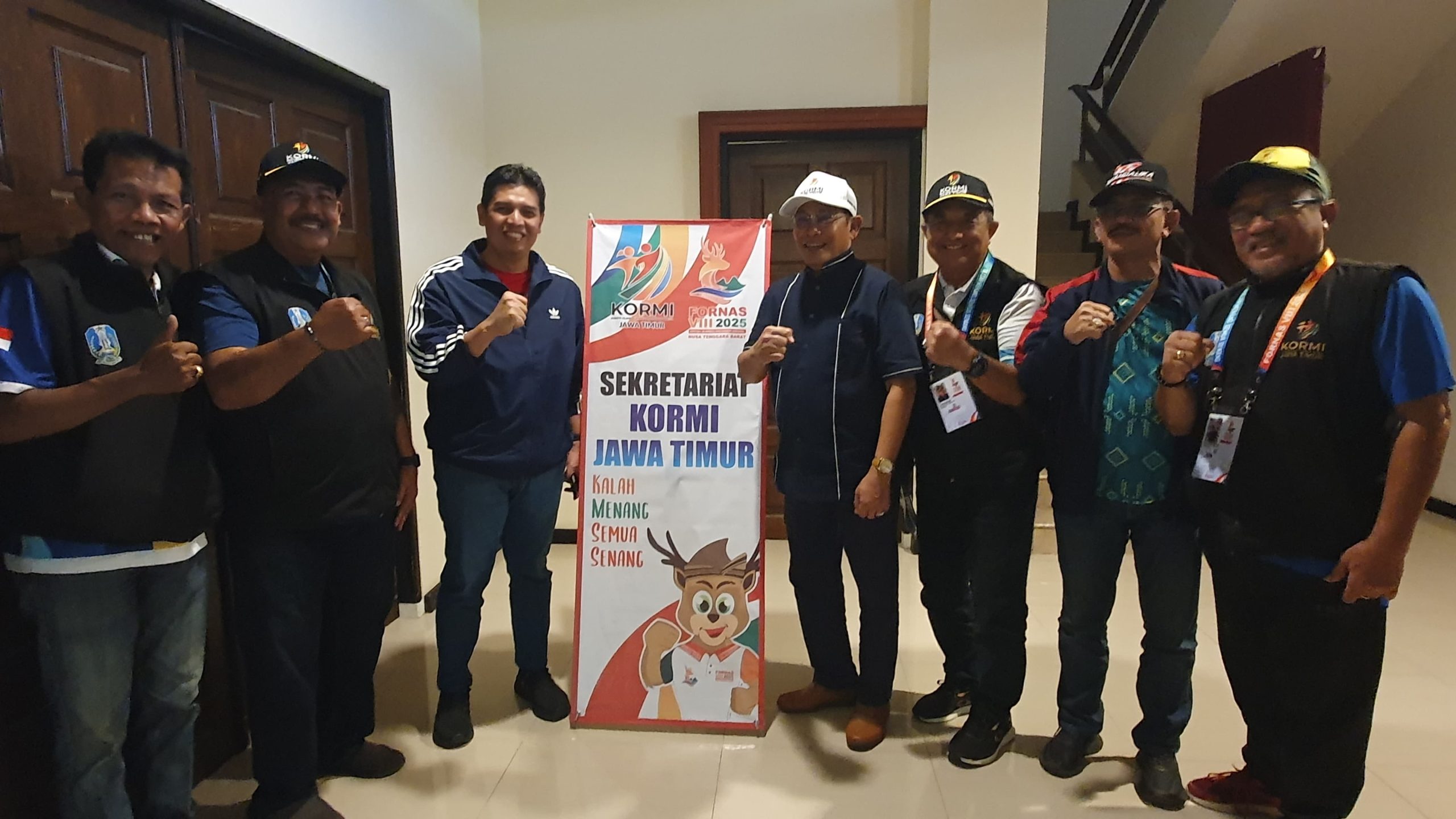 Hadi Wawan yang menyampaikan, Ibu Gubernur Jawa Timur sangat mengapresiasi perjuangan Kontingen Jatim. Setelah meninjau sekretariat KORMI Jatim, ia juga akan meninjau para pegiat dari 13 Inorga Jatim yang bertanding di Fornas VIII NTB.