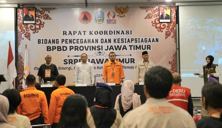 BPBD Jatim bersama Sekber Relawan Penanggulangan Bencana (SRPB) menggelar rapat koordinasi di Hotel Leedon, Surabaya, selama dua hari, Sabtu-Minggu (22-23/2/2025).