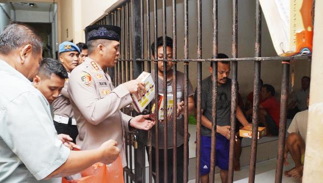 Kepedulian dalam bentuk pembagian takjil tersebut dilakukan Kapolresta Sidoarjo Kombes Pol Christian Tobing bersama pejabat utama Polresta Sidoarjo melalui pemberian takjil kepada tahanan, Kamis (13/3/2025) di Mapolresta Sidoarjo.