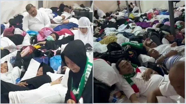 Kondisi tenda istirahat di Mina yang dinilai terlalu sempit sampai membuat para jemaah haji tidur dengan posisi duduk.