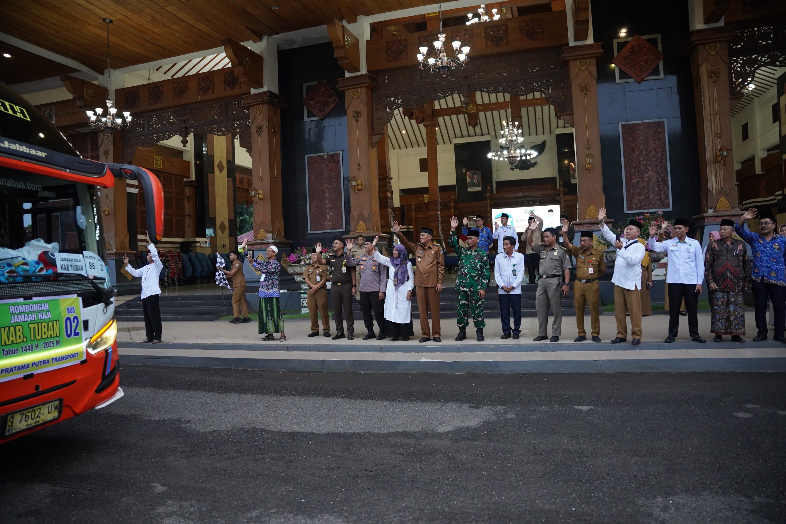 Berlokasi di Pendapa Krida Manunggal Tuban, rombongan JCH diberangkatkan langsung oleh Wakil Bupati Tuban, Drs Joko Sarwono didampingi Kepala Kantor Kemenag Tuban, Umi Kulsum dan perwakilan Forkopimda Tuban. Kloter 86 menjadi kloter terakhir asal Kabupaten Tuban yang berjumlah total mencapai 1.256 orang pada musim haji 1446 H/2025 M.