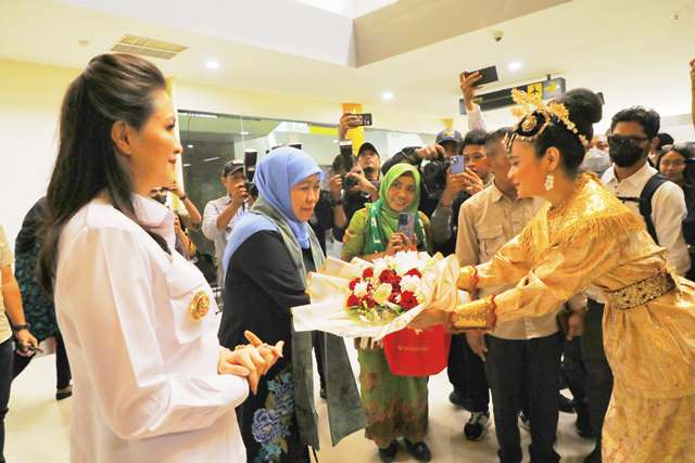 Begitu tiba di Bandara Sultan Babullah, Kota Ternate, Gubernur Khofifah langsung disambut hangat oleh Gubernur Maluku Utara Sherly Tjoanda Laos. Bersama jajaran Forkopimda Maluku Utara, Gubernur Malut Sherly Laos secara khusus mengalungkan syal kain khas Ternate, Batik Tubo pada Gubernur Khofifah.