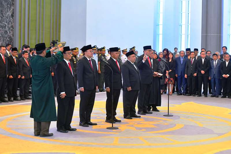 JAKARTA (wartadigital.id) – Lima Anggota Badan Pemeriksa Keuangan (BPK) RI terpilih untuk periode 2024-2029 mengucapkan sumpah jabatan, Kamis (17/10/2024) di Gedung Mahkamah Agung, Jakarta. Lima Anggota BPK tersebut adalah Akhsanul Khaq, Bobby Adhityo Rizaldi, Budi Prijono, Daniel Lumban Tobing, dan Fathan Subchi.