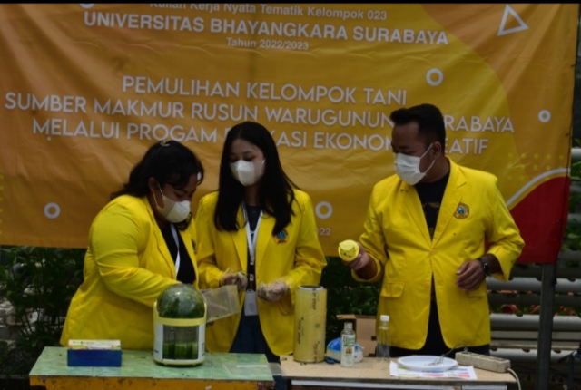 Melalui Program KKN Tematik Kelompok 023 Universitas Bhayangkara  melaksanakan Tri Dharma di Kelompok Tani Sumber Makmur yang berada di Rusun Warugunung Surabaya.