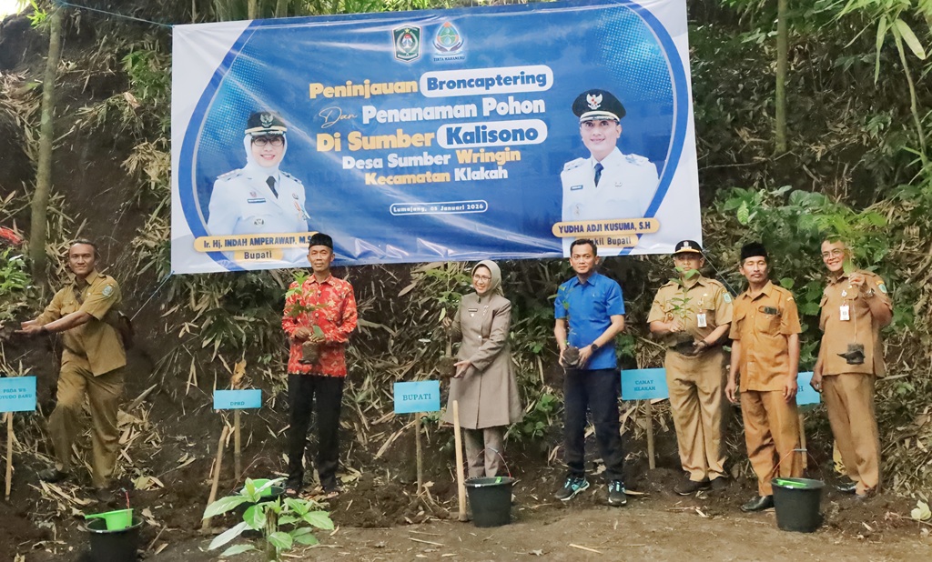 Pemerintah Kabupaten Lumajang menempatkan keberlanjutan sumber daya air sebagai pondasi utama dalam pembangunan pelayanan dasar. Hal tersebut ditegaskan Bupati Lumajang, Indah Amperawati, melalui kegiatan penanaman pohon di area Sumber Kalisono, Desa Sumberwringin, Kecamatan Klakah, Senin (5/1/2026), usai peresmian Sistem Penyediaan Air Minum (SPAM) Kalisono.