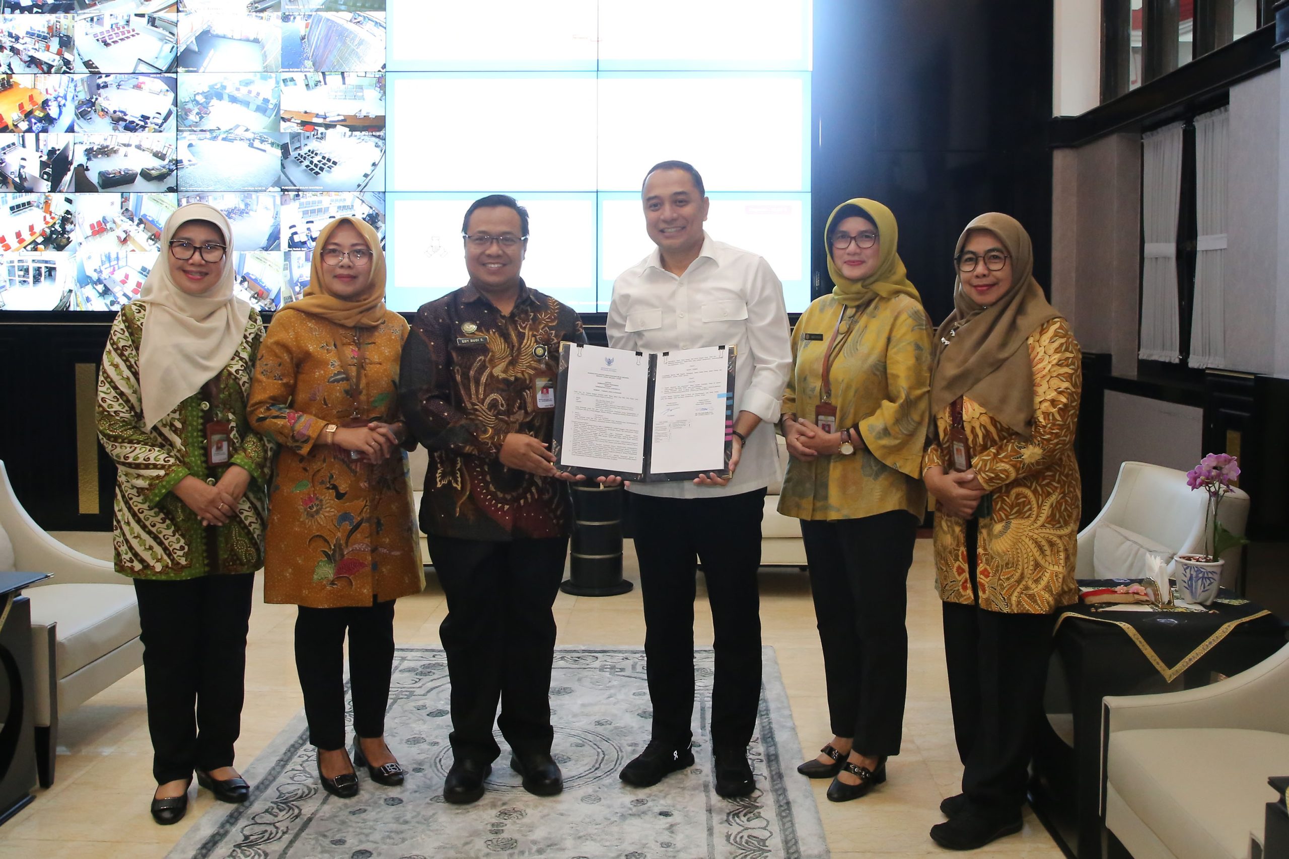 SURABAYA (wartadigital.id) – Pemerintah Kota (Pemkot) Surabaya menerima hibah tanah berupa jalan dari Balai Besar Veteriner Farma (BBVF) Pusvetma. Serah terima hibah tanah tersebut ditandai dengan penandatanganan dokumen yang berlangsung di ruang kerja Walikota Surabaya, Selasa (11/3/2025).