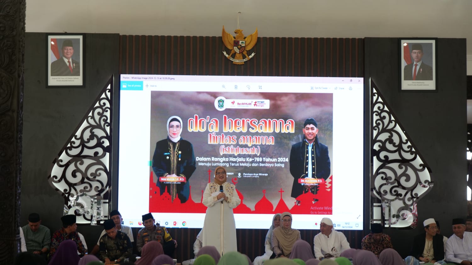 LUMAJANG (wartadigital.id) – Dalam rangka memeringati Hari Jadi Kabupaten Lumajang ke – 769 Tahun 2024, Pemerintah Kabupaten (Pemkab) Lumajang menggelar Do’a Bersama Lintas Agama di Pendopo Arya Wiraraja Kabupaten Lumajang, Sabtu (14/12/2024).