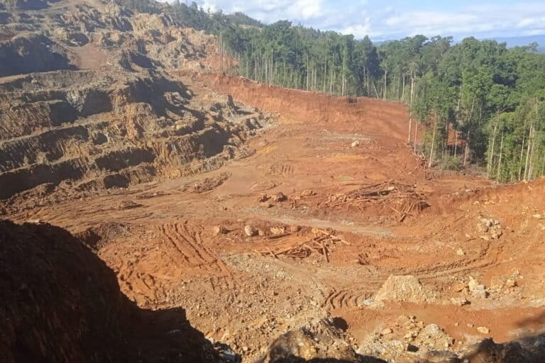 Kondisi hutan di Akejira perbatasan Halmahera Tengah dan Timur yang telah gundul akibat aktivitas besar-besaran pertambangan nikel.