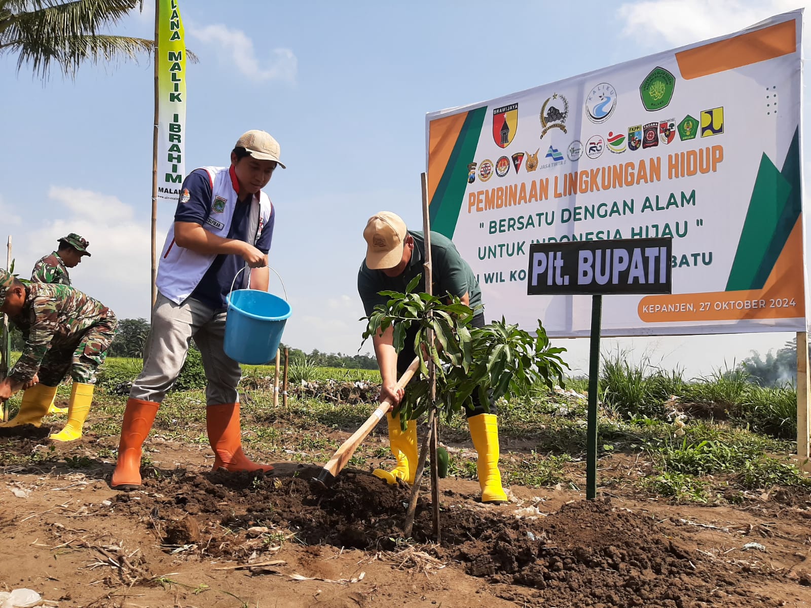 Pak Didik, sapaan akrab Plt. Bupati Malang juga turut melakukan penanaman pohon mangga didampingi Sekdin Dinas Lingkungan Hidup Kabupaten Malang, bersama-sama Rektor UIN Maulana Malik Ibrahim Malang dan Kasdim 0818 Kabupaten Malang.