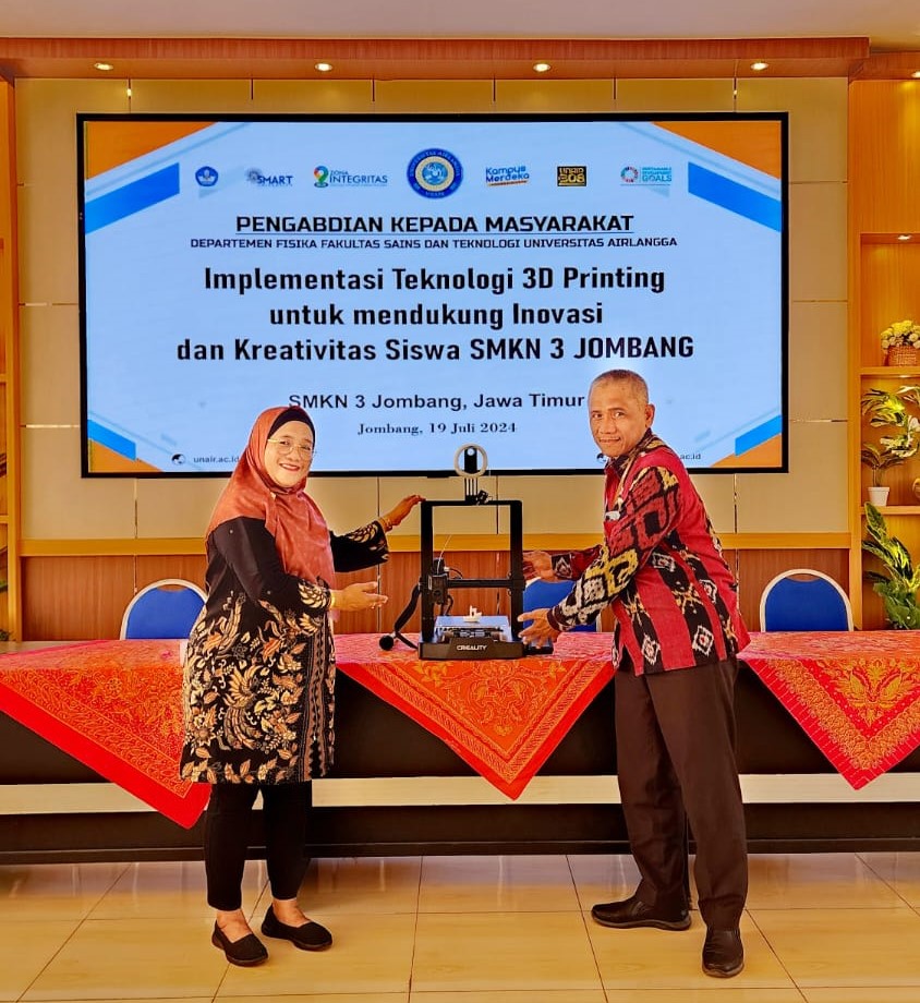 Dr Aminatun menjelaskan tujuan dilakukannya pengmas ini adalah membangun kerjasama dengan pihak sekolah sebagai wujud transfer knowledge yang dihasilkan Prodi S1 Fisika FST Unair serta menambah daya kreativitas dan inovasi siswa khususnya dalam pemanfaatan teknologi 3D printing untuk membuat berbagai prototipe, berbagai model produk, khususnya siswa di jurusan Desain Pemodelan dan Informasi Bangunan. “Dengan adanya pengmas ini maka akan membuka peluang inovasi bagi lulusan SMK untuk masuk dalam industri atau perusahaan yang menggunakan teknologi 4.0,” katanya.