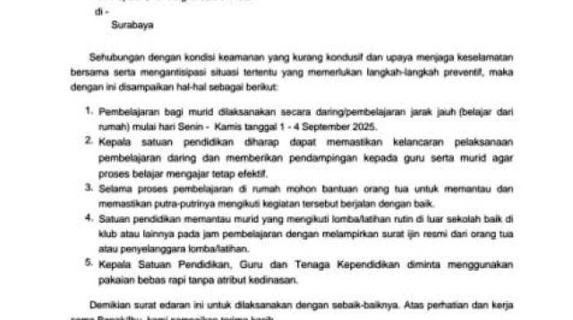 Tag: #Surabaya Terapkan Belajar Daring Mulai 1-4 September 2025