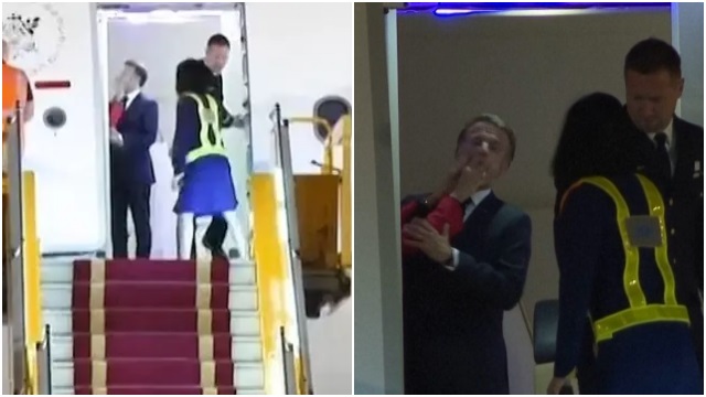 Macron tampak terkejut dengan aksi Brigitte itu, namun ia sadar sosoknya telanjur terekspos dan langsung melambaikan tangan, dikutip dari CNN. Saat menuruni tangga pesawat, Macron mencoba memberikan lengannya untuk digandeng oleh Brigitte. Namun, uluran tangan Macron tidak disambut Brigitte dan malah memegang railing atau pegangan tangga pesawat ketika keduanya turun dari pesawat.
