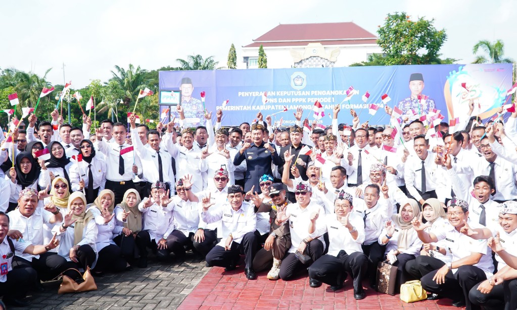 LAMONGAN (wartadigital.id) – Bupati Lamongan Yuhronur Efendi serahkan keputusan pengangkatan Calon Pegawai Negeri Sipil (CPNS) dan Pegawai Pemerintah dengan Perjanjian Kerja (PPPK) periode satu formasi 2024, Rabu (14/5/2025) di Alun-Alun Kabupaten Lamongan.
