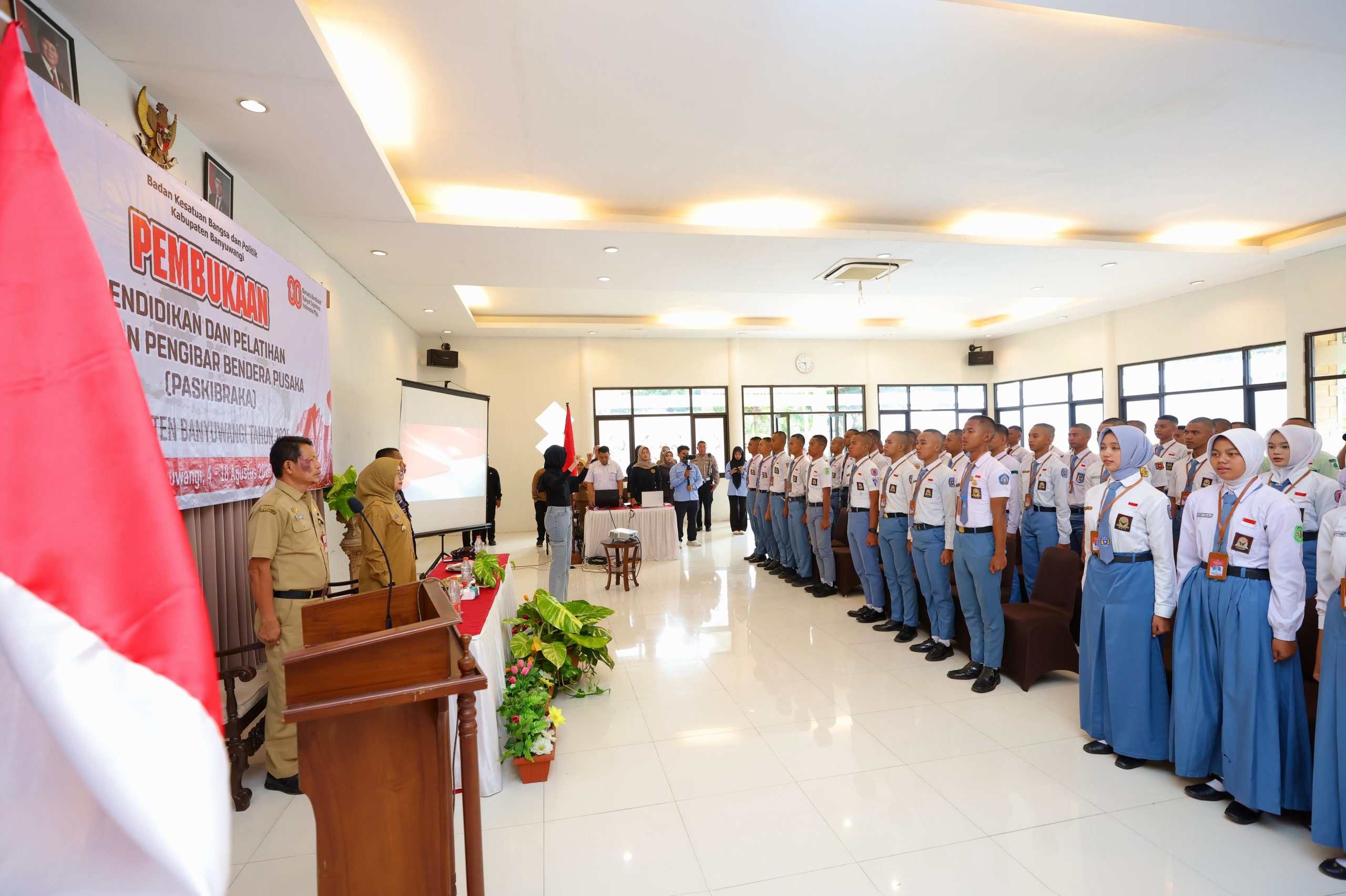 Pendidikan dan Pelatihan Calon Paskibraka tersebut dibuka langsung Bupati Banyuwangi Ipuk Fiestiandani di Hotel Tanjung Asri, Senin (4/8/2025).