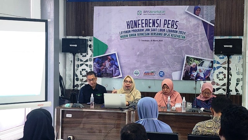 Hal itu disampaikan Kepala BPJS Kesehatan Cabang Surabaya Hernina Agustin Arifin di sela penyampaian program Pelayanan Libur Lebaran 2024 di kantor BPJS Kesehatan Cabang Surabaya, Rabu (20/3/2024).