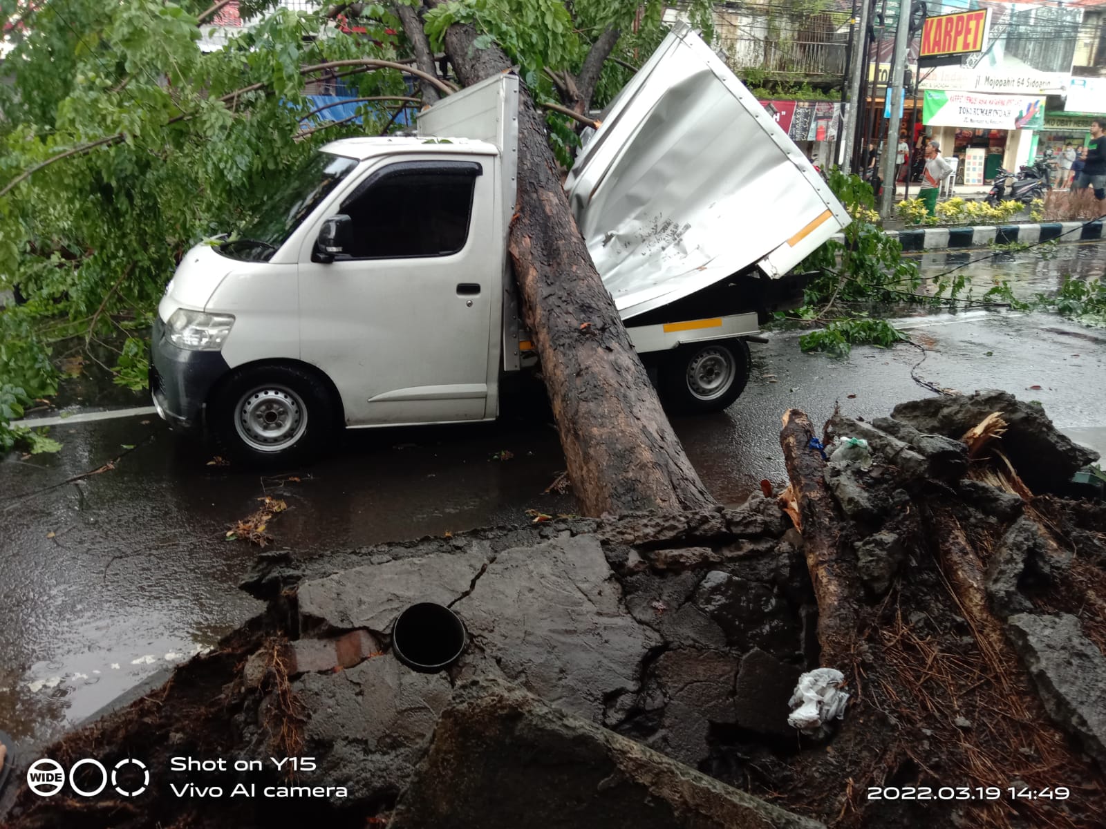 Pohon Tumbang di Sidoarjo Bikin 2 Mobil dan Motor Ringsek, Picu 2 Korban Luka