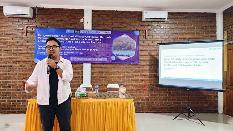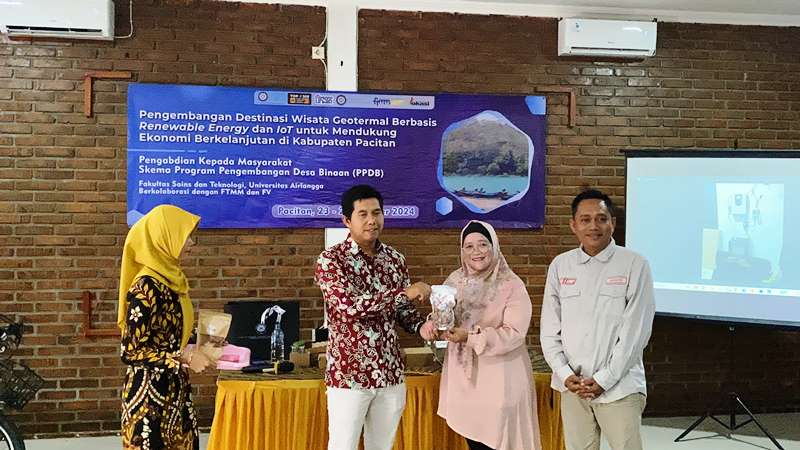 PLTS hybrid sendiri secara simbolis sudah diserahkan bersamaan dengan penyerahan sepeda listrik oleh Ketua PPDB Unair 2024 Prof Dr Ir Retna Apsari MSi kepada Pokdarwis Pesona Ngiroboyo, Kamis (24/10/2024). Penyerahan produk ini menjadi bukti FTMM siap bersama masyarakat untuk meningkatkan potensi Kabupaten Pacitan, dan sangat mendukung SDGs 7 dan 9. Sedangkan pelaksanaan Pengmas PPDB Unair 2024 di Pacitan berlangsung sejak 23-25 Oktober 2024.