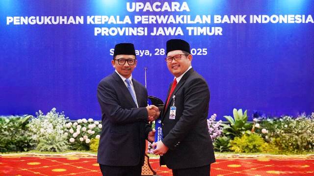 SURABAYA (wartadigital.id) – Deputi Gubernur Bank Indonesia (BI) Juda Agung mengukuhkan Ibrahim sebagai Kepala Perwakilan Bank Indonesia (KPwBI) Provinsi Jawa Timur, Rabu (28/5/2025).