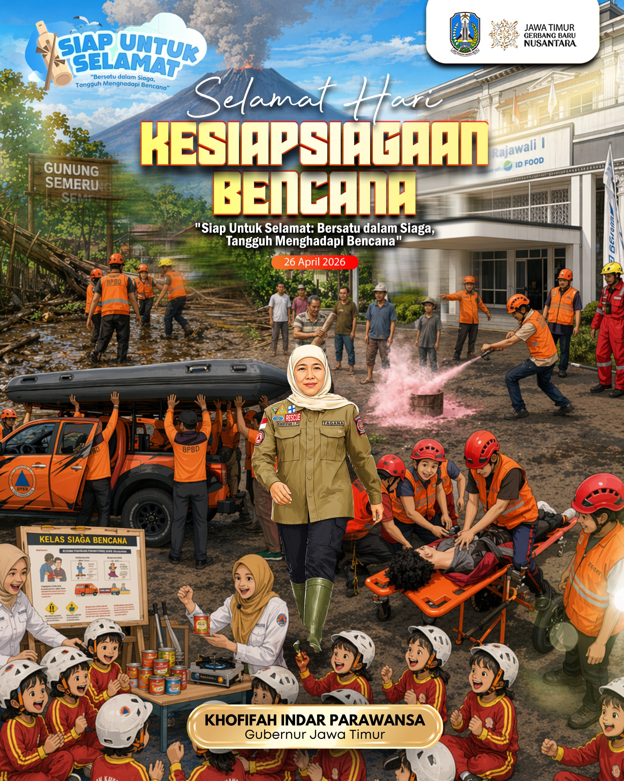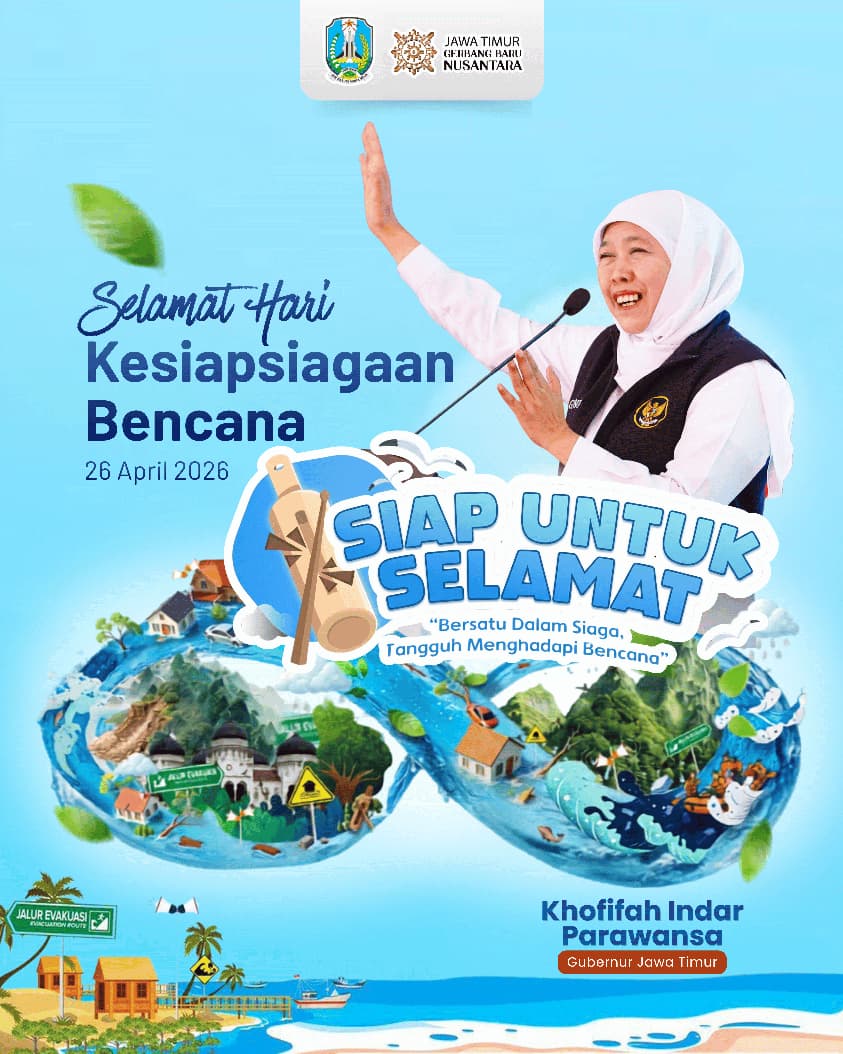 Hal itu secara khusus disampaikan Gubernur Khofifah pada Peringatan Hari Kesiapsiagaan Bencana Tahun 2026 pada hari ini, Minggu (26/4/2026).