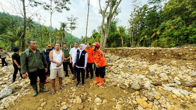 Menyusuri medan curam dan licin, Gubernur Khofifah hadir di tengah warga terdampak, memastikan proses penanganan berjalan maksimal, pencarian korban dilakukan secara intensif, serta warga terdampak mendapatkan perlindungan dan layanan menyeluruh.