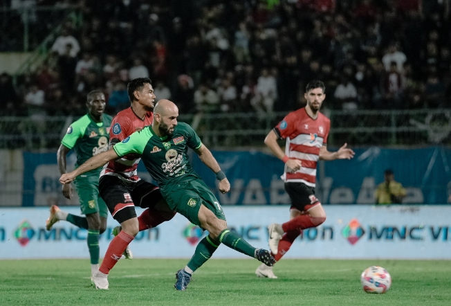 BANGKALAN (wartadigital.id) – Laga derby Suramadu antara Madura United melawan Persebaya di Stadion Gelora Bangkalan, Senin (2/12/2024) malam, Green Force langsung tampil menyerang sejak menit awal ditiupkan oleh wasit.