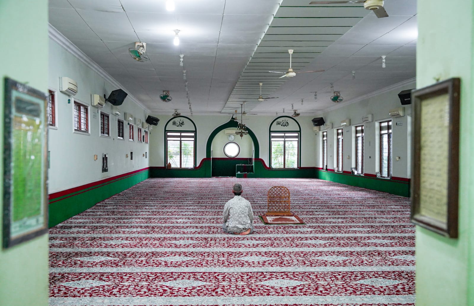 Salah seorang jamaah saat lakukan ibadah di masjid Mudhor, Tuban.