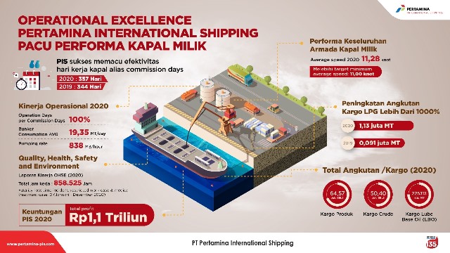 Sampai akhir tahun lalu, PIS berhasil mengangkut kargo produk sebanyak 64,57 juta BBLS. Sementara untuk angkutan crude mencapai 50,40 juta BBLS. Untuk angkutan kargo Lube Base Oil (LBO), sampai dengan akhir tahun lalu volume angkut yang dilakukan PIS mencapai 225,113 ribu MT.