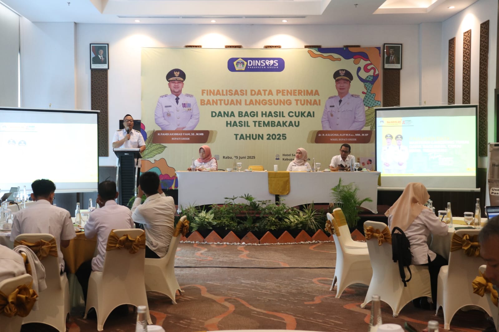 GRESIK (wartadigital.id) – Pemerintah Kabupaten Gresik melalui koordinasi lintas sektor tengah memperkuat fondasi akurasi data bantuan sosial. Bertempat di Hotel Santika Gresik, Rabu (25/6/2025), dilakukan finalisasi data Bantuan Langsung Tunai (BLT) yang bersumber dari Dana Bagi Hasil Cukai Hasil Tembakau (DBHCHT).