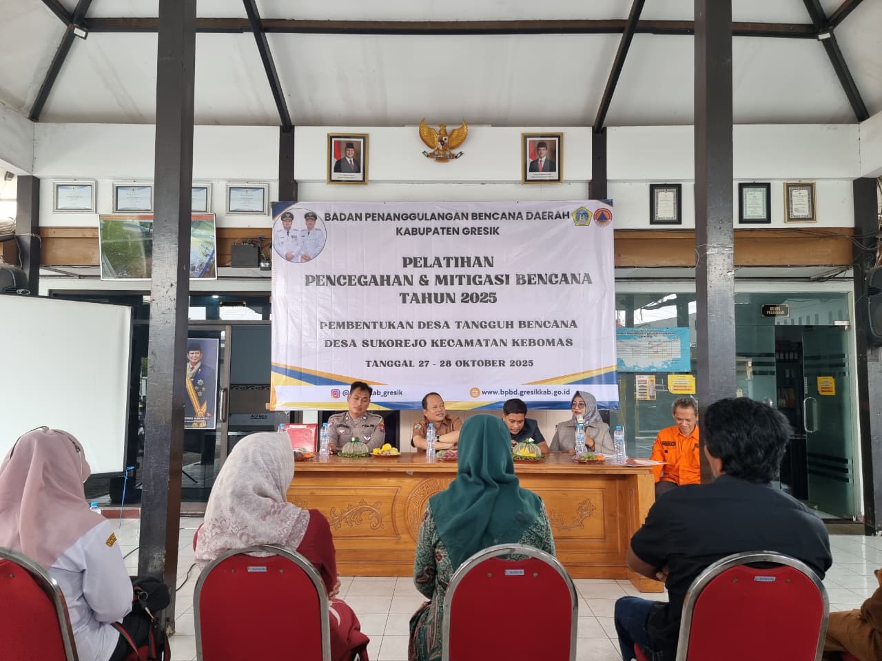 GRESIK (wartadigital.id) – Pemerintah Kabupaten Gresik melalui Badan Penanggulangan Bencana Daerah (BPBD) kembali mengadakan Pelatihan Pencegahan dan Mitigasi Bencana Tahun 2025 sekaligus pembentukan Desa Tangguh Bencana (Destana) di Desa Sukorejo, Kecamatan Kebomas, Senin (27/10/2025).