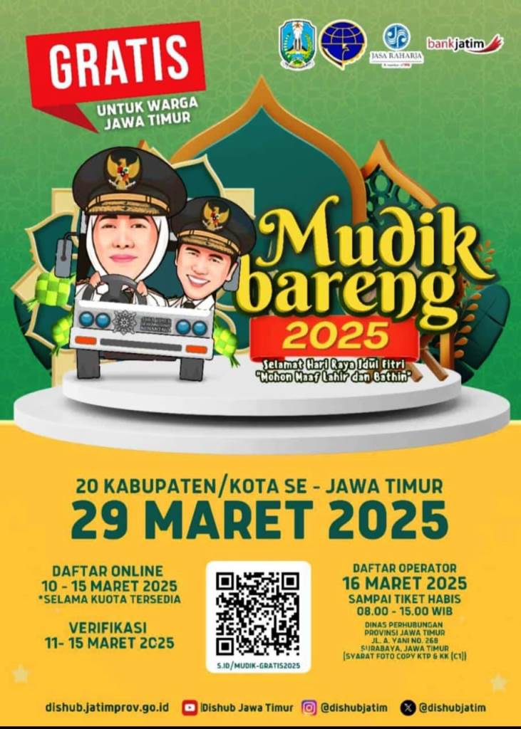 Sebagai informasi, bagi masyarakat yang ingin mengikuti program mudik gratis maupun balik gratis Pemprov Jatim, informasi lebih lanjut dapat diperoleh melalui situs Dinas Perhubungan Jawa Timur atau bisa datang langsung ke Kantor Dinas Perhubungan Provinsi Jawa Timur Jl. Ahmad Yani Surabaya.