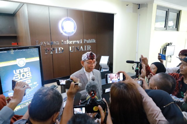 Rektor Universitas Airlangga Prof Dr Mohammad Nasih SE MT memberikan keterangan ke media, Jumat (7/6/2024).