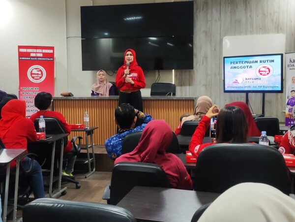 Ketua FIJ Bojonegoro Selvi Meris saat memberi materi bagi pelaku IKM untuk bisa membuat desain logo secara mandiri, Rabu (17/9/2025) di gedung PIP Bojonegoro