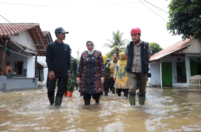 Pj Bupati Indah Wahyuni melihat secara langsung kondisi pemukiman warga yang terendam air