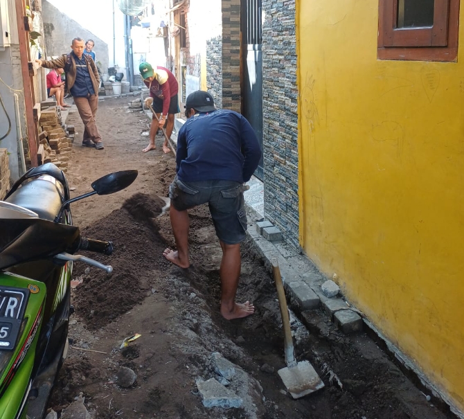 Untuk pembangunan pemavingan dan pembuatan saluran air baru di kedua gang yakni X-C dan X-F sudah dimulai sejak Kamis (17/7/2025). Di antara pengerjaan itu antara lain pembongkaran paving yang lama dan penggalian tanah untuk saluran air.