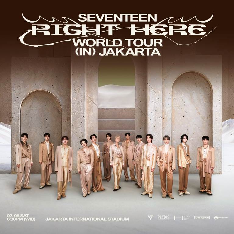SEVENTEEN, boy group asal Korea Selatan yang debut pada 2015, telah meraih popularitas global melalui berbagai lagu hits seperti “Love, Money, Fame,” “Maestro,” “Left & Right,” dan “HOT.” Dikenal sebagai “self-producing group”, boy grup yang terdiri dari 13 anggota berbakat ini memiliki basis penggemar setia di seluruh dunia. Tur dunia bertajuk RIGHT HERE ini akan membawa SEVENTEEN mengunjungi beberapa negara di Asia, termasuk Jepang, Filipina, dan Singapura, sebelum akhirnya menyapa penggemarnya di Indonesia.