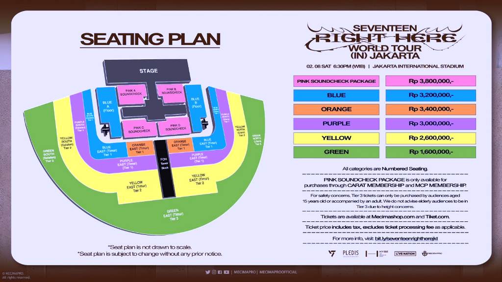 Kategori dan harga tiket konser SEVENTEEN [RIGHT HERE] WORLD TOUR IN JAKARTA: