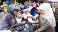 Gubernur Khofifah Bagikan Sembako untuk Masyarakat Kurang Mampu, Marbot dan Ojol di Surabaya